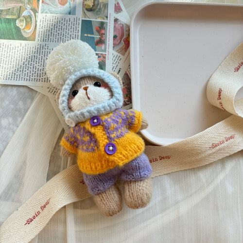 Handmade Crochet Bear Doll (5.5" x 2.75") - Limited Edition Knit Stuffed Animal | Customizable Handcrafted Plush Toy