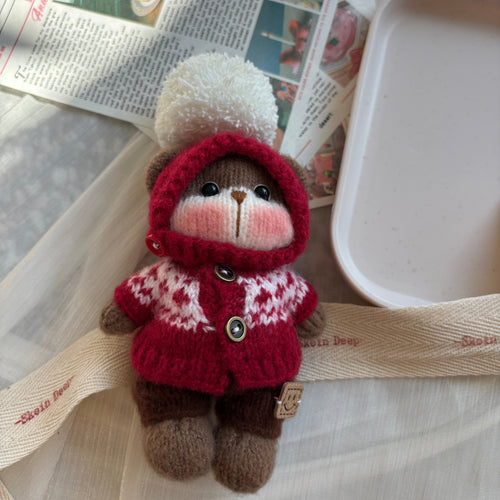 Handmade Crochet Christmas Red Knit Bear Figurine | 14cm Cute Plush Doll - Unique Handcrafted Decor Piece (One of a Kind)