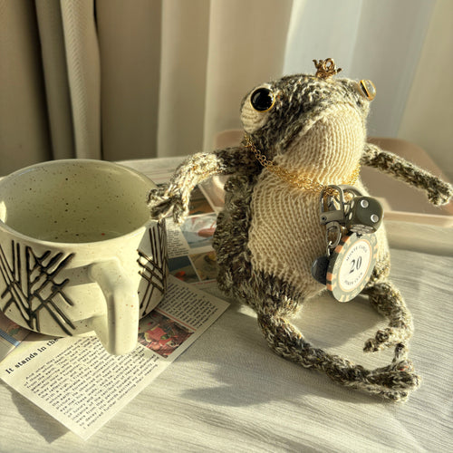 Handmade Crochet Gray Royal Frog Plushie (15cm) | Removable Crown & Accessories | Keychain Included (Decor/Bag Charm)